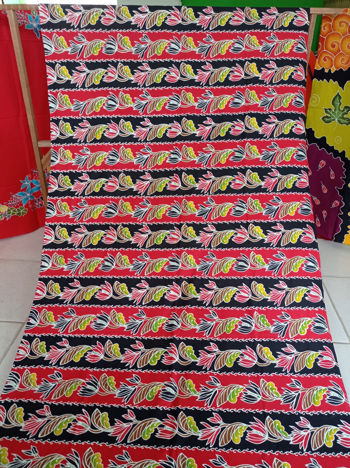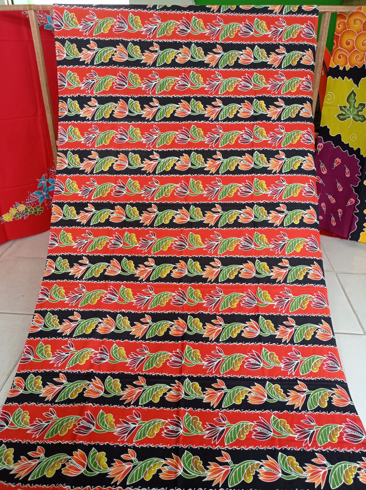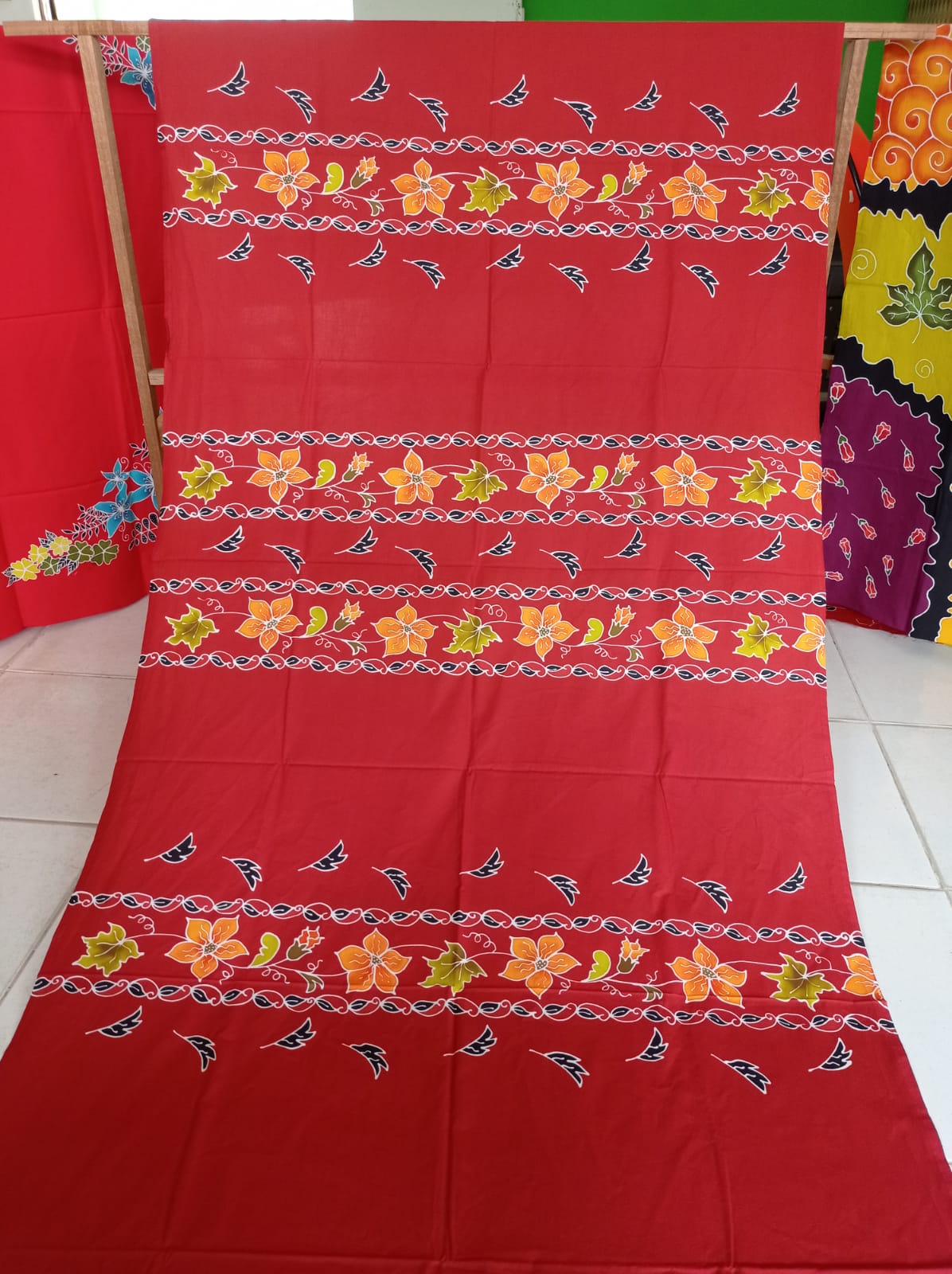 BATIK TABIR CEMPAKA (DASAR MERAH HITAM BUNGA HIJAU MERAH)