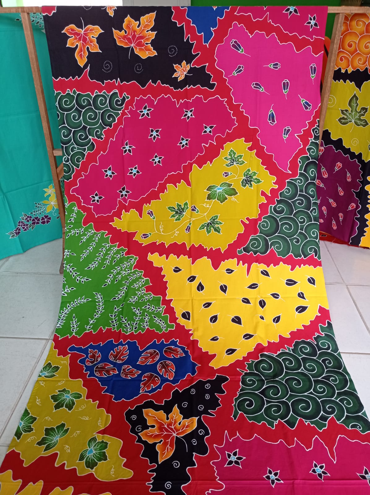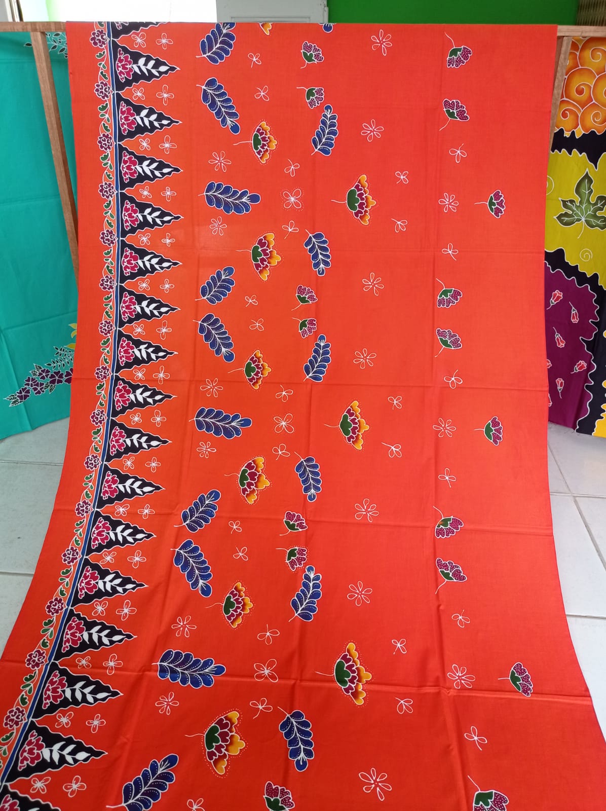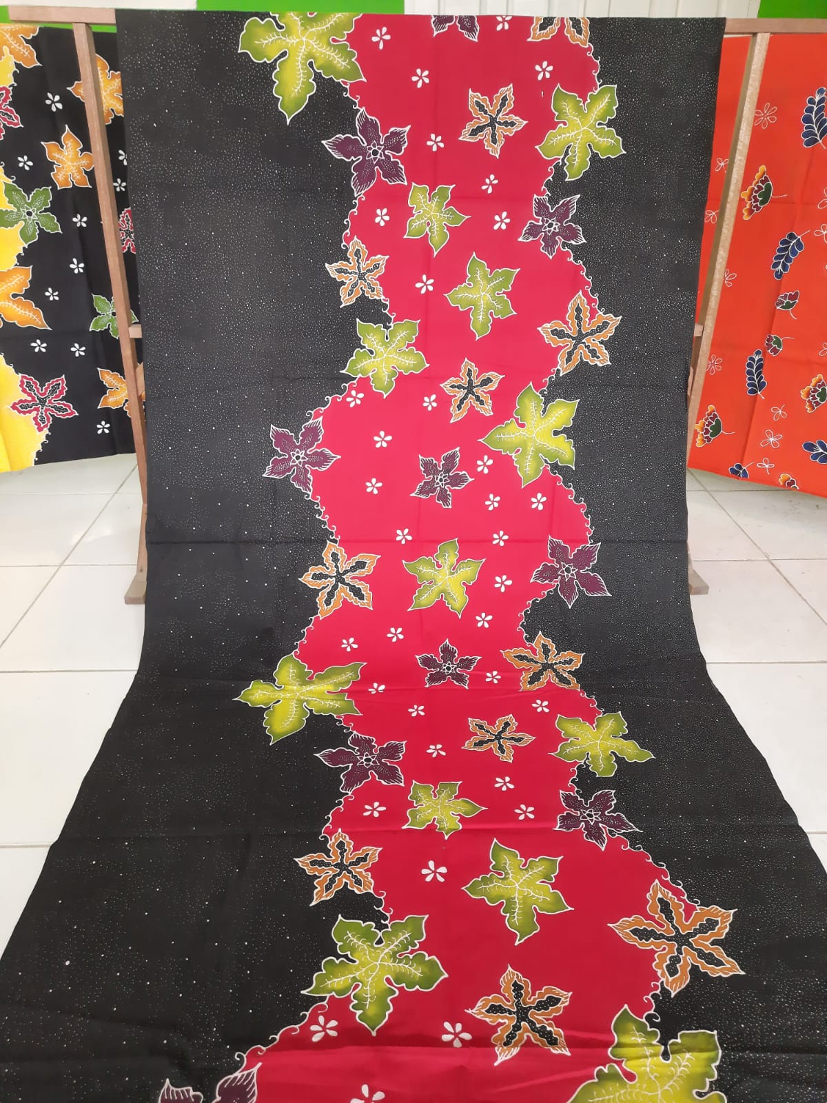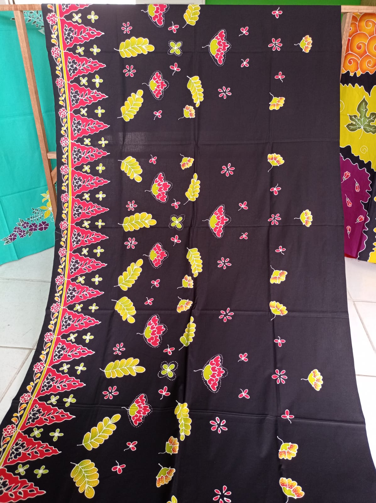 BATIK TABIR CEMPAKA (DASAR MERAH HITAM BUNGA HIJAU MERAH)