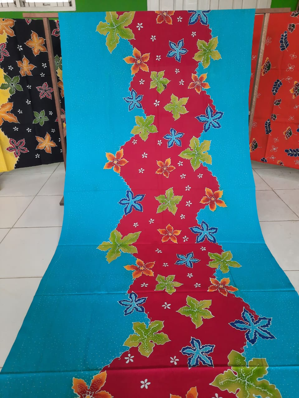 BATIK BUNGA BINTANG (DASAR BIRU MERAH)