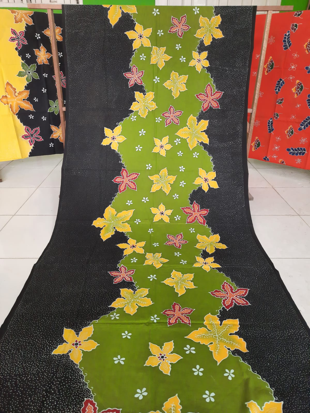 BATIK BUNGA BINTANG (DASAR HITAM HIJAU)